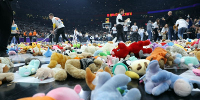 Poletele su ka terenu kada je krenula pesma, a oko 40 volontera ih je skupljalo dok su košarkaši i delegacija Virtusa u čudu gledali šta se dešava. Meč je kasnio tri minuta jer se očigledno ni klub nije nadao da će toliko igračaka biti uneo u Arenu, pa volonteri kojima su i gledaoci pomagali da sve skupe nisu mogli sve da postignu.