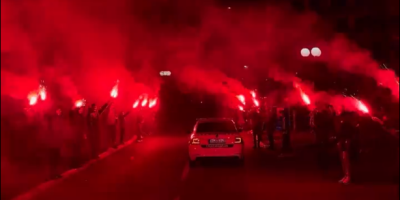 Doček za pamćenje napravila je velika grupa navijača uz bakljadu, vatromet, a orila se i pesma: "Samo jedno ime znam - Partizan Beograd".