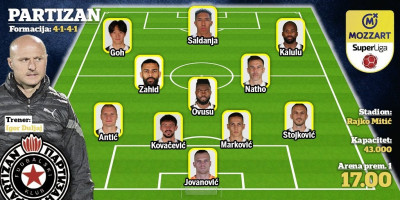 PARTIZANOV TIM ZA DERBI (4-1-4-1): Jovanović - Stojković, Marković, Kovačević, Antić - Ovusu - Zahid, Natho, Kalulu, Goh - Saldanja.