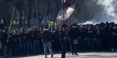"Grobari" su krenuli u velikom broju, a naravno celo vreme su pevali navijačke pesme, a tu su bili navijački barjaci.
