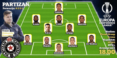 PARTIZAN (4-2-3-1) - Jovanović - De Medina, Marković, Mujakić, Jurčević - Arijaga, Kovač - Severina, Zahid, Kalulu - Saldanja.