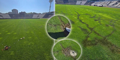 "FK Partizan obaveštava javnost da je tokom prethodne noći teren na stadionu u Humskoj ulici, na kom je za sutra zakazano odigravanje najveće utakmice srpskog fudbala, uništen u značajnoj meri. Grupa organizovanih kriminalaca, tokom noći provalila je u prostor stadiona i izvela obesan pir uništavanja terena. Kao što se može videti iz priloženih fotografija, delinkventi su razbijali pivske flaše i ogromnu količinu stakla rasuli po celom terenu. Uz to je teren, koji spada u red najmodernijih hibridnih terena, koji je FK Partizan ugradio prošle godine uz pomoć UEFA i FSS, uništen polivanjem i paljenjem naftnih derivata po celoj površini terena", objašnjavaju iz FK Partizan.