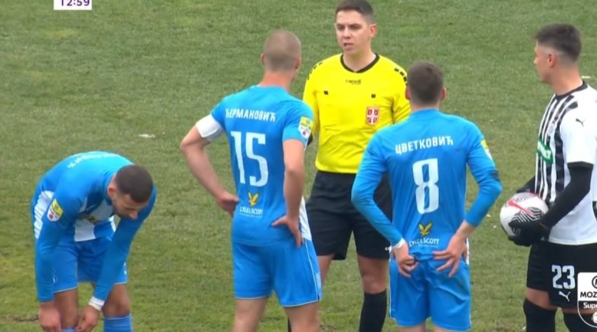 Pogodila je lopta Miljana Momčilovića u ruku i sudija Milan Stefanović je odmah svirao jedanaesterac, ali i dodelio direktan crveni karton defanzivcu gostiju.