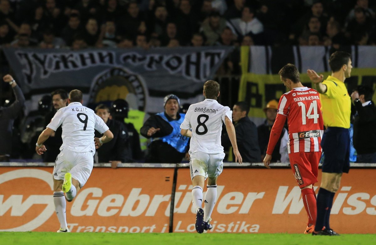 Trenutak kada Nemanja Kojić postiže pogodak za pobedu u 146. večitom derbiju