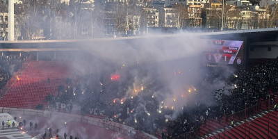 Oni su poleteli ka samoj ogradi koja se nalazi uz teren kako bi proslavili gol sa fudbalerima, a zapaljene su i mnogobrojne baklje, petarde i pirotehnika u raznim bojama.