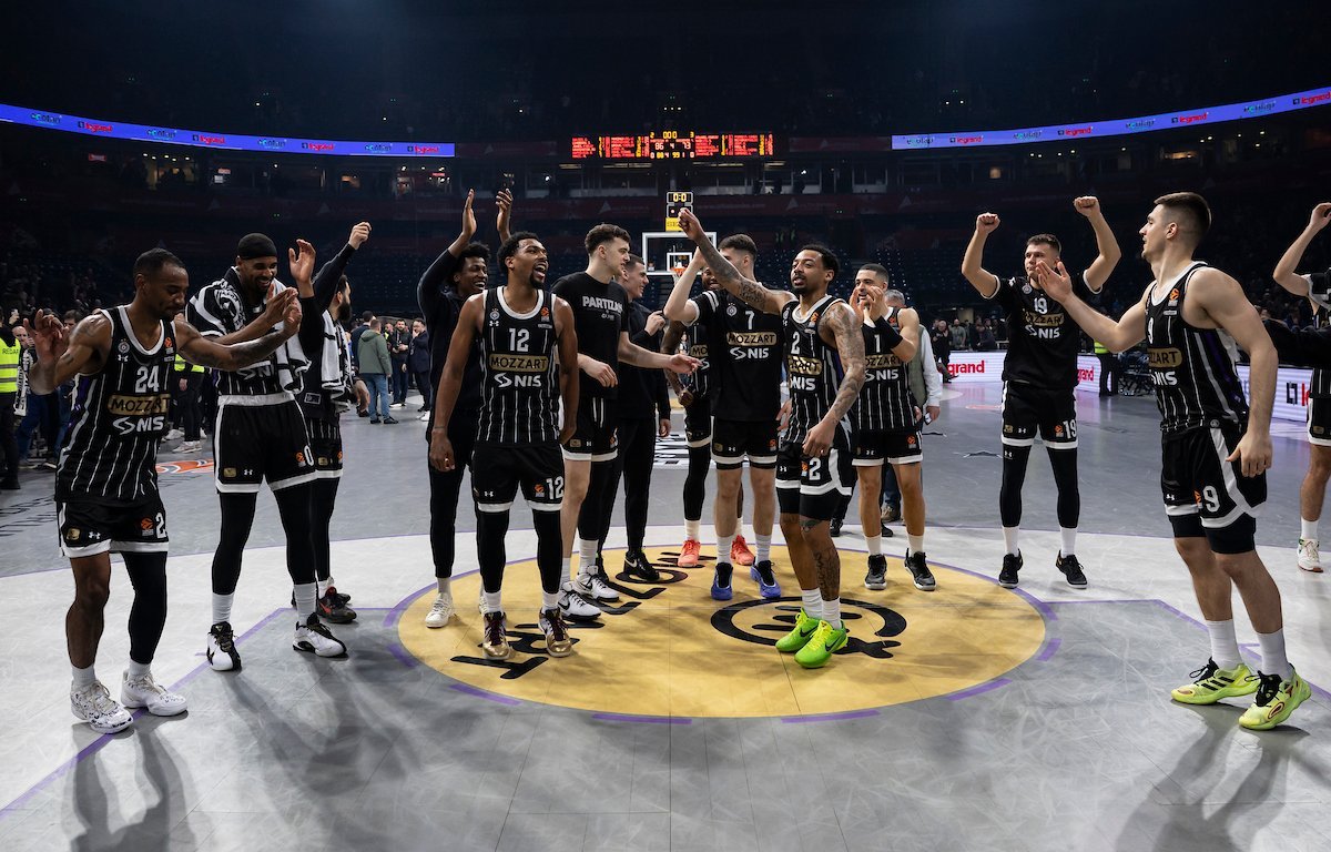 Slavlje igrača Partizana posle pobede nad Baskonijom