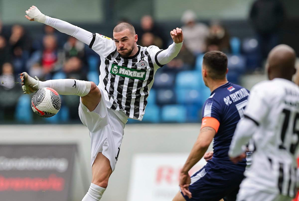 9. minut - Gađao je Vukotić u želju da postigne prvi gol u dresu Partizana. Ipak, mladi fudbaler neprecizan.