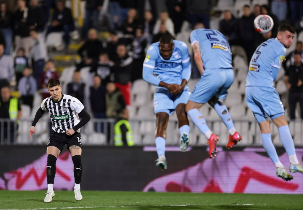 31. minut - GOOOL! Prvi kontakt s loptom i odmah pogodak Filipovića. Natho je s desne strane izveo prekid, odlično je Izraelac centrirao, a iskusni defanzivac odmah po ulasku na teren i u prvom kontaktu s loptom zatresao mrežu posle udarca glavom. Crno-beli vode sa 2:0.