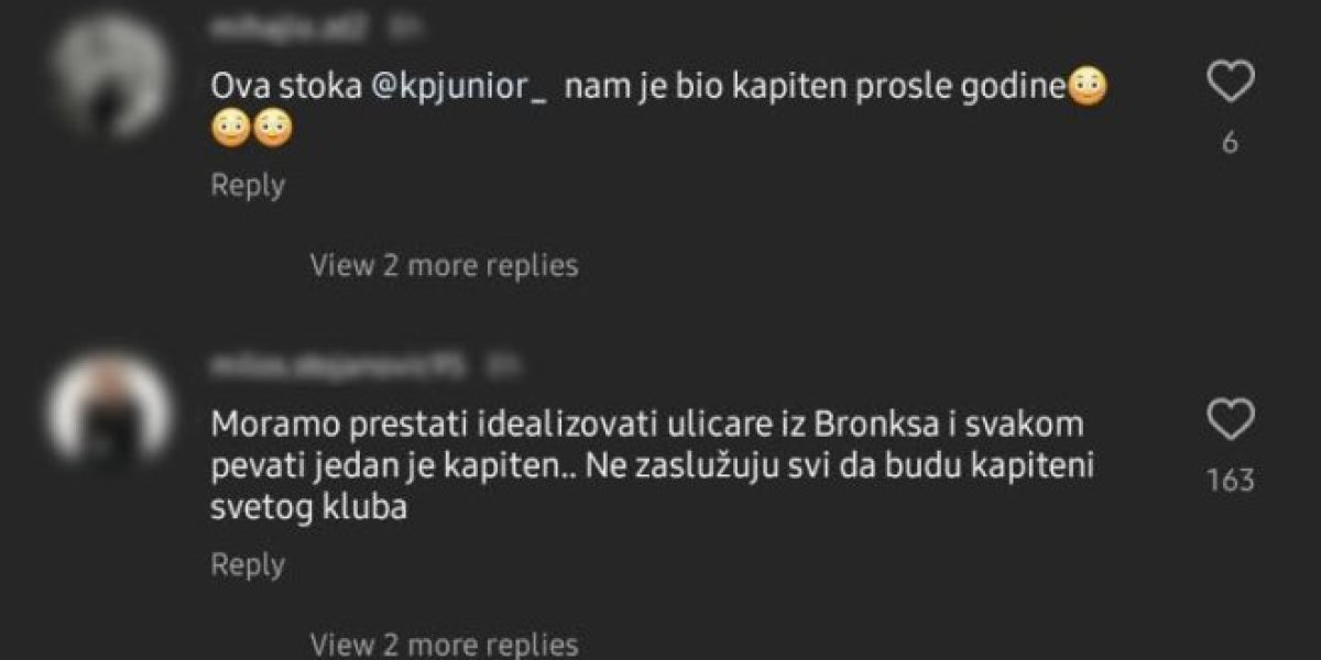 "Moramo prestatit da idealizujemo uličare iz Bronksa i svakome pevati jedan je kapiten. Kevin - totalno razočaranje. Nije više moj kapiten. Panter iritantan kao Ljulj", glase neki od komentara.
