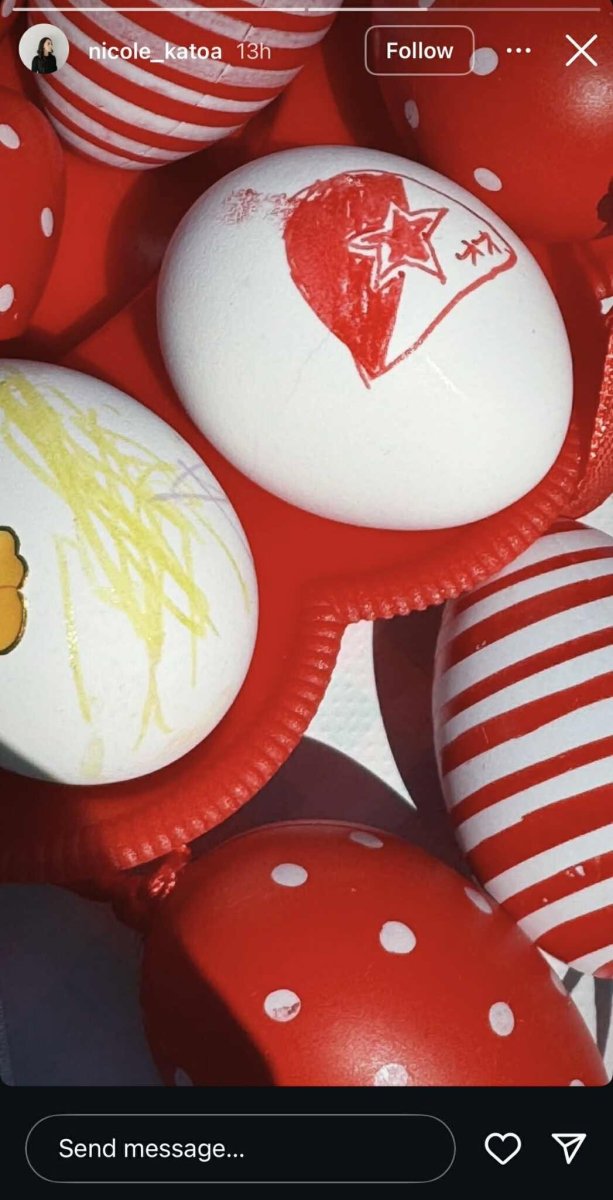 Nikol Katoa, supruga košarkaša Crvene zvezde - Džoela Bolomboja, još jednom je pokazala koliko voli klub svog muža i time osvojila simpatije Zvezdinih navijača. Naime, ona je na društvenim mrežama podelila fotografije vaskršnjih jaja u crveno-belim bojama, uz klupski grb.