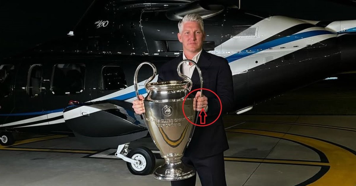 Švajni je na svom Instagramu objavio fotografiju i serijim video snimaka kako trofej Lige šampiona donosi u Minhen i tom prilikom se vidi da na levoj ruci nosi prsten.