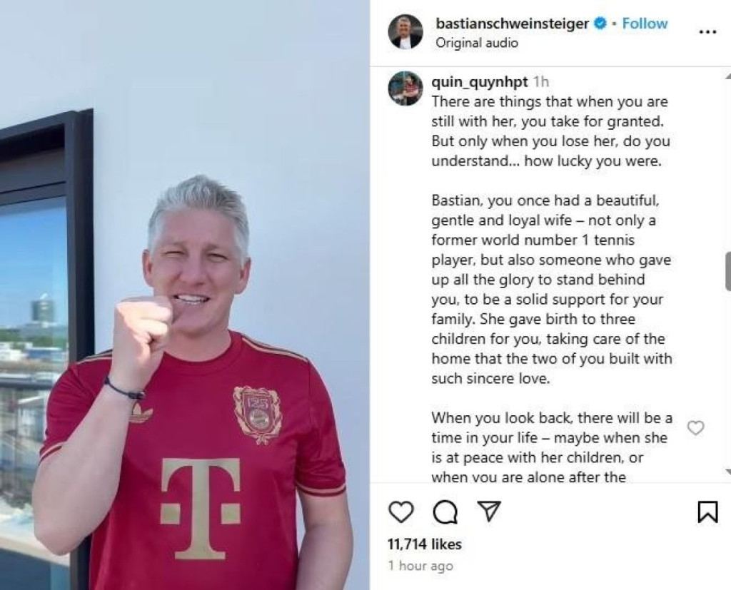 Jedan od pratilaca proslavljenog nemačkog fudbalera Bastijana Švajnštajgera (40) ostavio je veoma emotivan komentar na njegovoj poslednjoj objavi na društvenoj mreži "Instagram", a tiče se njegovog razvoda sa bivšom srpskom teniserkom Anom Ivanović (37).