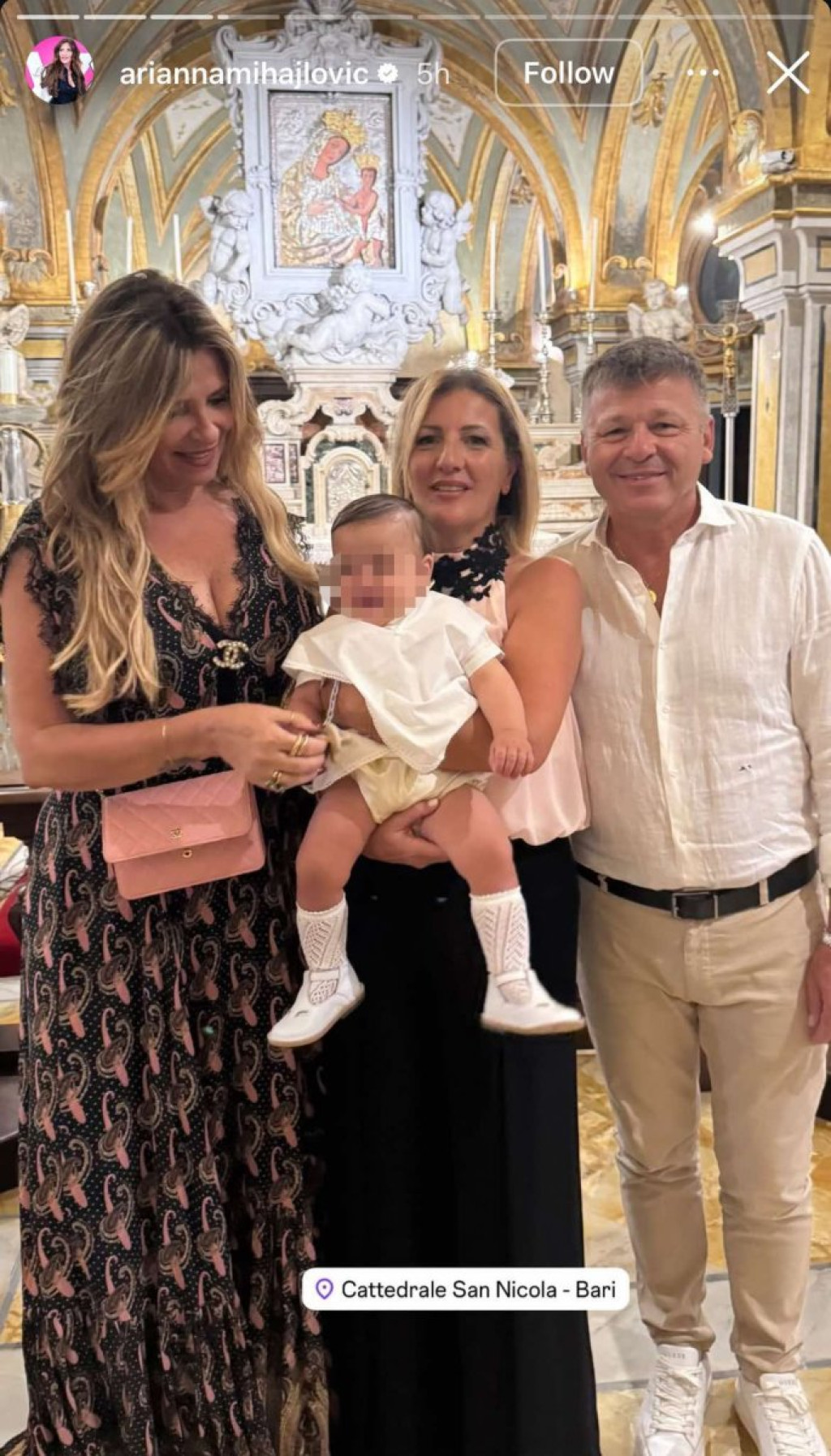 I danas je upravo Ariana bila ta koja je sa pratiocima podelila prve fotografije sa krštenja svog unuka, koje je obavljeno u Katedrali San Nicola - Bari. Ceremonija je, sudeći po objavama, protekla u intimnoj atmosferi, u prisustvu porodice i najbližih prijatelja.