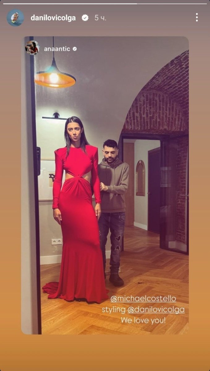 Zanimljivo, haljinu je izabrala poznata stilistkinja, inače ćerka legendarnog fudbalskog trenera, Radomira Antića, Ana Antić. Ona se pohvalila izgledom Olge na društvenoj mreži "Instagram", da bi njenu objavu "repostovala" Danilovićeva.