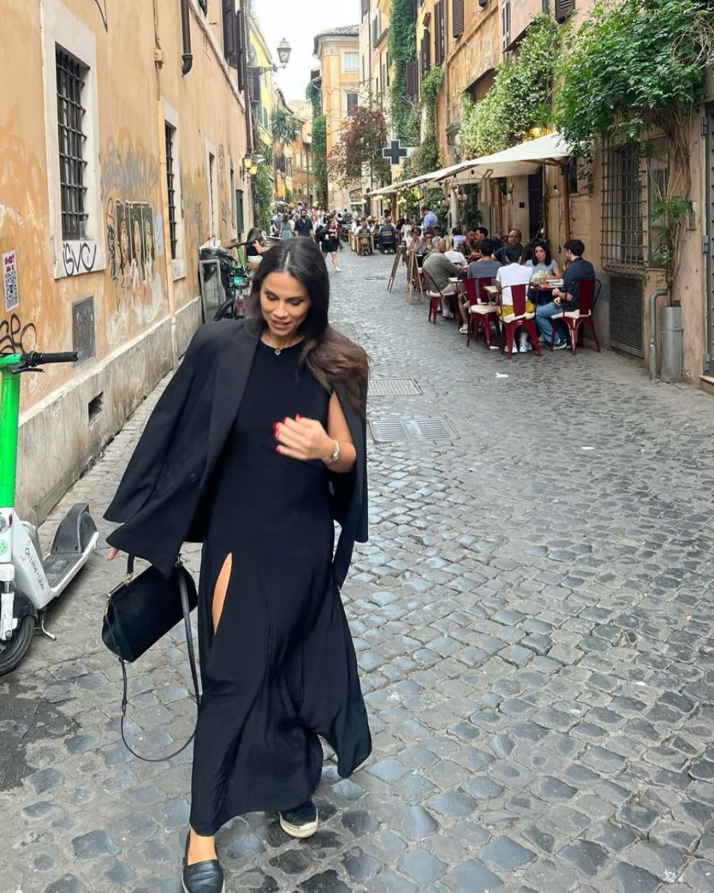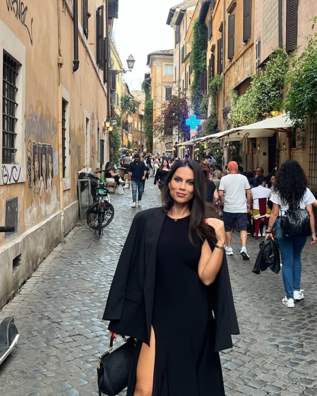 Na Instagram profilu je objavila nekoliko fotografija iz Rima sa Viktorom i oduševila fanove, pa pljušte komplimenti. Aleksandra je za šetnju Rimom odabrala jednostvanu dugu crnu haljinu sa dubokim šlicem, neutralnu šminku. Ali, zračila je kao da na pisti pod reflektorima.