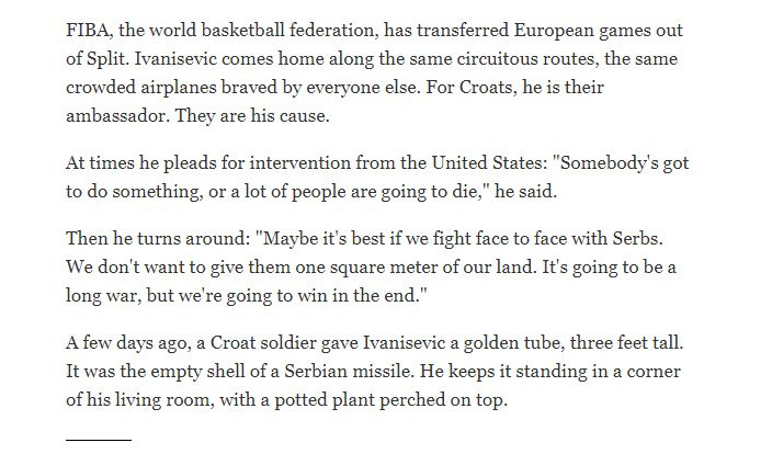 - Pokazali su mi kako da pucam, onako iz zabave. Dali su mi da pucam iz mitraljeza. Bilo je teško kontrolisati ga, ali, ah, kako je bio lep osećaj, videti te metke kako izlaze. Pomislio sam kako bi bilo lepo imati neke Srbe kako stoje ispred mene.
