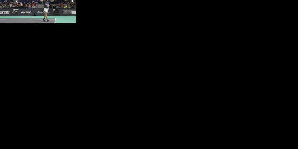 Cicipas se u trenucima kada je izgubio poena razmahao reketom oborivši stolicu blizu momka koji dodaje lopte.