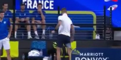 Polomio je reket, pa je bacio flašicu sa vodom...Francuski teniseri su morali da ga smiruju.