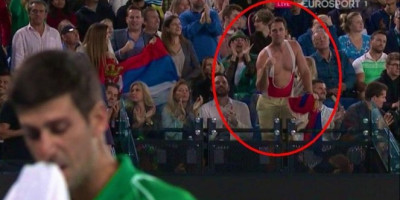 (FOTO) NAJLUĐA SCENA SA FINALA AUSTRALIJAN OPENA! "Srpski Borat" u KOMBINEZONU uleteo u Đokovićevu ložu!