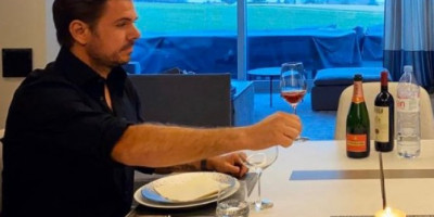 Švajcarski teniser je sedeo preko puta velikog plišanog medveda, sve je režirao da izgleda kao romantična večera, iako mu je izabranica nedostajala.