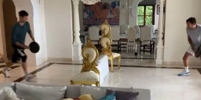 Uz poruku, "Takmičenje nikada ne prestaje", Novak je odigrao partiju tenisa u svom domu i to sa tiganjem kao improvizovanim reketom.