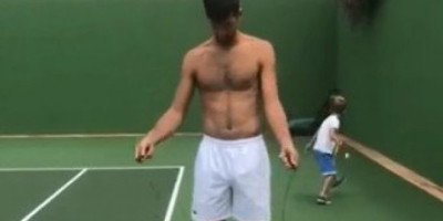 Nole je zadao zadatak da se izvede 100 "double under" preskoka, kako se to kaže u crosfitu, ili po srpski 100 duplih preskoka vijače. Odmah do njetga nalazio se i Stefan, koji je reketom udarao lopticu u zid.