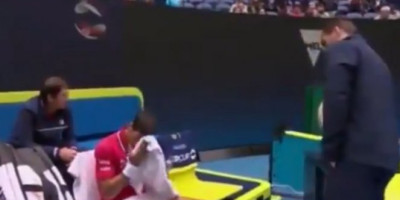 Pri rezultatu 7:5, 4:3, Novak je bio nezadovoljan što je izgubio gem, Kanađanin je izjednačio, a Đoković je besno udario kutiju na kojoj stoje peškiri.
