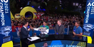 Razgovora za kanal 9 u Australiji, sa novim šampionom Ozi opena rađen ispred srpskih navijača. Očekivano, bila je to prava ludnica, kao i svake godine.
