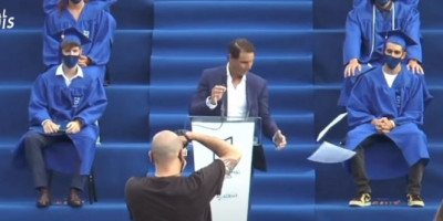Govor je počeo podsećanjem na poraz od Novaka. Kada je izašao na binu vetar mu je razneo sve papire koje je spremio i na kojima mu je bio napisan govor. Njegova reakcija na to nasmejala je sve prisutne.