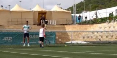 Stefan se ne odvaja od tate dok trenira, pa smo videli još jednu zanimljivu scenz. Pre nego što je započeo trening Đoković je vezao pertle sinu Stefanu.