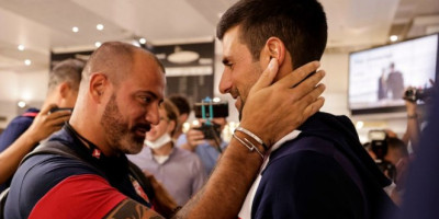Tako su se sreli Novak Đoković i trener Zvezde Dejana Stankovića. Srdačno su se pozdravili i izgrlili veliki prijatelji, i jedan drugome su poželeli sreću.