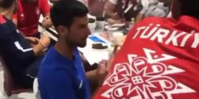 Ne može Novak ni da ruča na miru. Tako je snimljen kako u olimpijskom restoranu priča sa sportistima iz Turske. Tačnije, pričao je on, a oni su ga slušali, i "upijali" svaku reč.