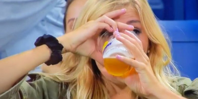 Kamera je fokusirala u jednom momentu, a ona je eksirala čašu piva i zabavila navijače. Po onome što smo videli, ovo joj nije bilo prvi put.
