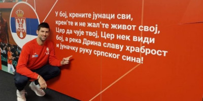 „Marš na Drinu“ je posebna motivacija, što pokazuje i fotografija Đokovića uz čuvene stihove. Đoković se slikao pored panoa gde su upisani stihovi i uz osmeh pokazao na njih.