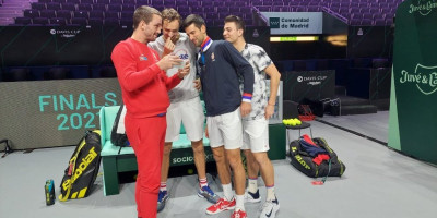 Za sada nije poznato šta Troicki pokazuje ostaloj trojici, ali možemo nagađati da je reč o pobedi Rusa nad Špancija koja je Srbiji pomogla da se nađe u Madridu.