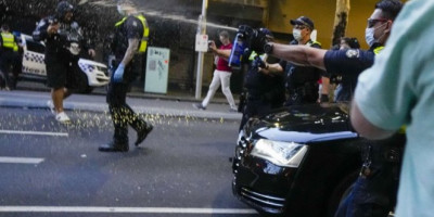 Ubrzo je policija reagovala i poprskala ih suzavcem, a neki navijači prošli sa lakšim povredama.