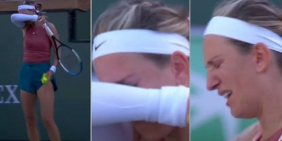 Azarenke je naprasno počela da plače. Posle greške prilikom servisa je samo čučnula, pokušala je da nekako da zaustavi suze, ali je onda briznula u plač.