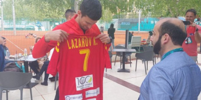 Najbolji teniser sveta sa tribina je pratio jedan od najboljih golmana planete Jan Oblak, a nakon meča je od legendarnog makedonskog rukometaša Kirila Lazarova dobio dres.