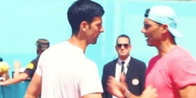 Novak i Rafa Njih su se videli na jednom od terena za trening, pa je, kako i dolikuje vrhunskim asovima, odmah usledio i sportski pozdrav.