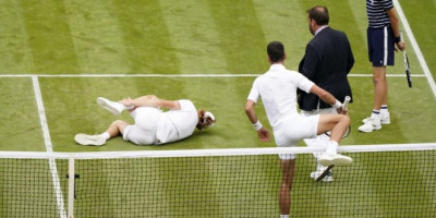 Mladi Italijan je nastavio da leži na zemlji, a zatim je dotrčao Novak Đoković koji je pomogao svom rivalu da ustane.
