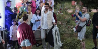 Naša novinarka nalazi se u Visokom i uhvatila je stampedo ljudi koji su okružili Novaka Đokovića, a slikanje trajalo je nekoliko minuta pre nego što je srpski majstor uspeo da se "iskobelja" i ode na reviju.