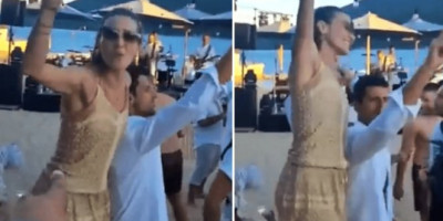 Novak i Jelena su sve oduševili, nemaju fanovi našeg asa često priliku da ga video u opštenom izdanju, posebno njegovu suprugu. Pevali su, veselili se, Nole je čak uzeo mikrogon i zapevao, a onda su pali u trans uz popularni narodnjački hit „Koktel ljubavi“.