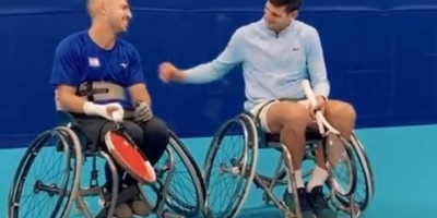 FENOMENALAN GEST NOVAKA! Đoković igrao tenis u invalidskim kolicima (VIDEO)