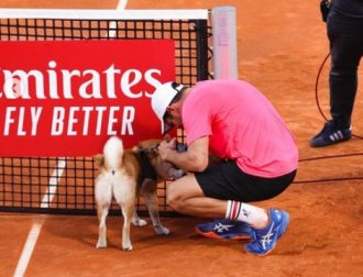 Srpski teniser je odmah počeo da slavi, a na terenu mu se pridružio i njegov pas Rio.