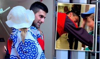 Novaka su nakon meča u hodniku kompleksa Rolan Garosa sačekala njegova deca Stefan i Tara.