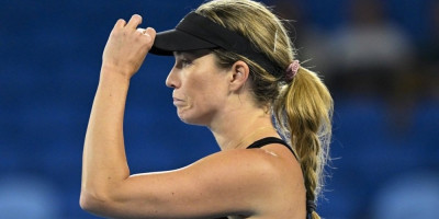 Sakari je servirala, poslala lopticu u aut, a onda je u frustraciji napucala loptu u tribine.
