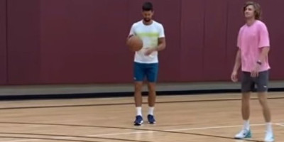 Rešio je Nole malo da se opusti u košarkaškoj sali pre polufinalnog meča koji igra sa Aleksandrom Zverevim, latio se lopte i oprobao se za velikim prijateljem i rivalom Andrejom Rubljovim.
