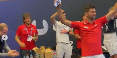 U jednom momentu je Troicki nasmejao Đokovića, jer je umesto "Jutro je", pevao u šali "utroje, utroje". Pogledajte ludo slavlje naših tenisera!