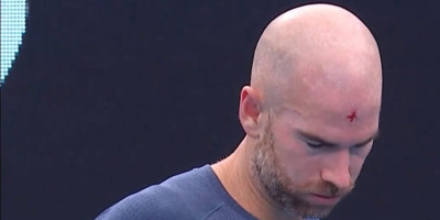 Igrao se drugi gem drugog seta i Francuz je gubio sa 30:0. Vidno nervozan, Manarino je bes iskalio na svom reketu kojim je lupao - sebi po glavi!