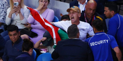 Vikao je "Oslobodite Palestinu" i razvio zastavu, a pripadnici obezbeđenja ekspresno su ga izbacili sa "Rod Lejver arene".